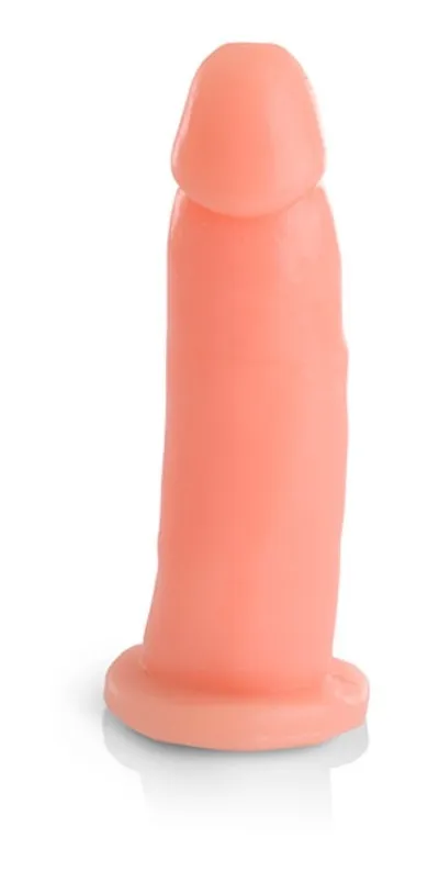 Juguete erótico de diseño flexible, superficie lisa y suave con glande pronunciado de tamaño mediano.
